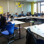 Nach dem Frühstück sind wir inzwischen wieder bei der Arbeit. Zu verschiedenen Themenfeldern wird noch einmal in Kleingruppen gearbeitet.
